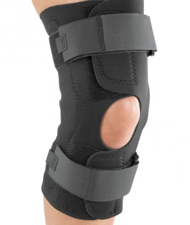 15.5"-18" Neoprene wraparound configuration and strap tabs. Posterior Straps with metal alignment to support proper positioning. Ideal for mild MCL, LCL, mild arthritis, post arthroscopic menisectomy.